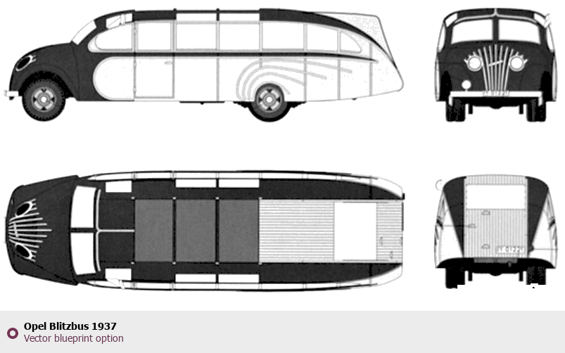 Raster blueprint of the Opel Blitzbus 1937 Bus. This free downloadable image can be used for graphic projects, digital design, and 3D modeling. The file provides accurate exterior proportions of the vehicle. Body type: Bus.