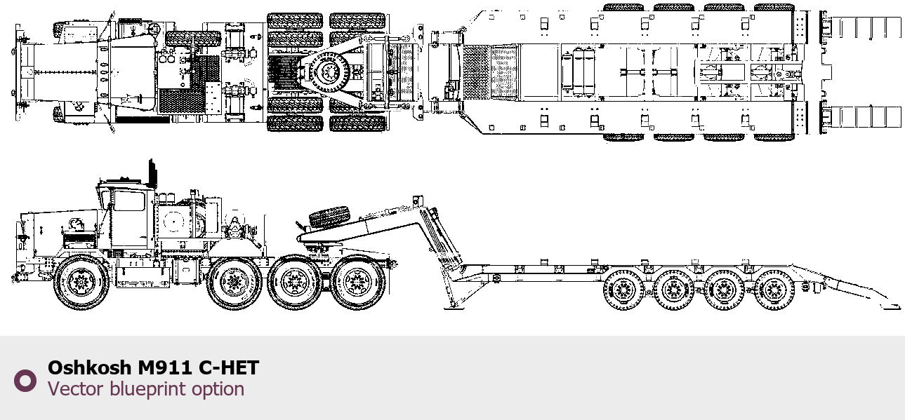 Raster blueprint of the Oshkosh M911 C-HET Heavy Truck. This free downloadable image can be used for graphic projects, digital design, and 3D modeling. The file provides accurate exterior proportions of the vehicle. Body type: Heavy Truck.