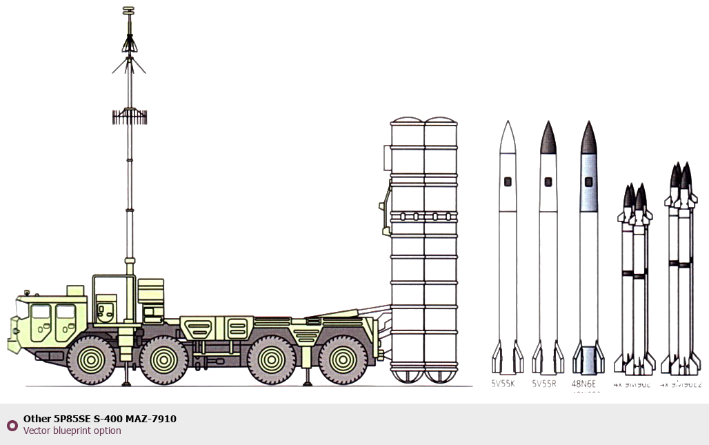 Raster blueprint of the Other 5P85SE S-400 MAZ-7910 Heavy Truck. This free downloadable image can be used for graphic projects, digital design, and 3D modeling. The file provides accurate exterior proportions of the vehicle. Body type: Heavy Truck.