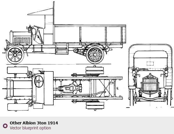 Raster blueprint of the 1914 Other Albion 3ton Heavy Truck. This free downloadable image can be used for graphic projects, digital design, and 3D modeling. The file provides accurate exterior proportions of the vehicle. Model year: 1914. Body type: Heavy Truck.