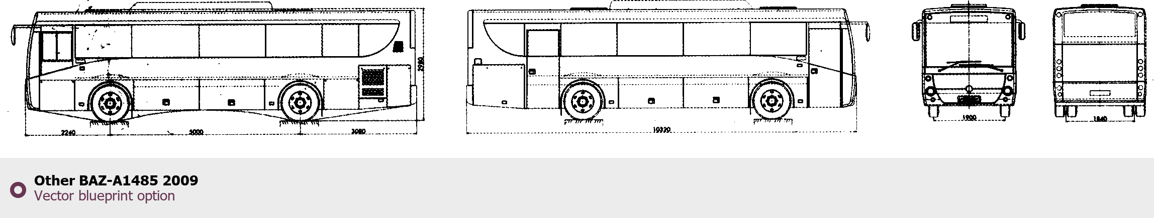 Raster blueprint of the 2009 Other BAZ-A1485 Bus. This free downloadable image can be used for graphic projects, digital design, and 3D modeling. The file provides accurate exterior proportions of the vehicle. Model year: 2009. Body type: Bus.