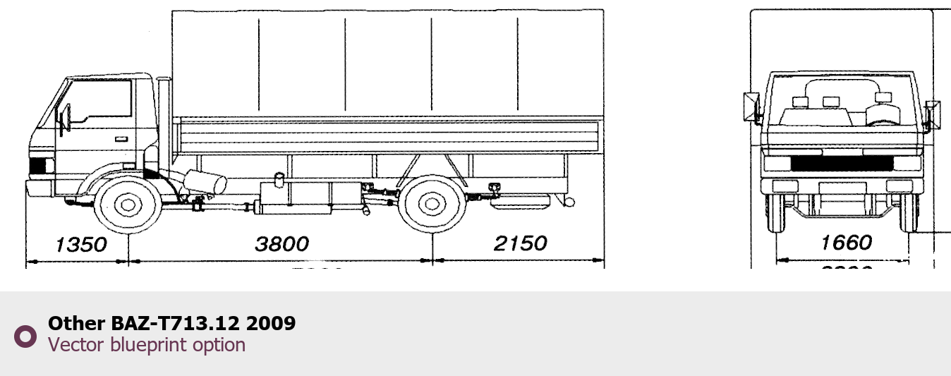 Raster blueprint of the Other BAZ-T713.12 2009 Heavy Truck. This free downloadable image can be used for graphic projects, digital design, and 3D modeling. The file provides accurate exterior proportions of the vehicle. Body type: Heavy Truck.
