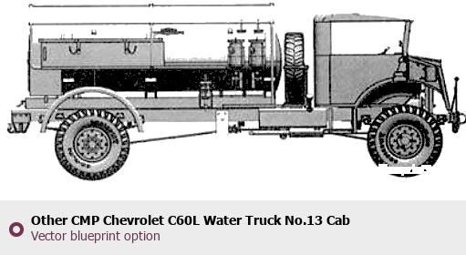 Raster blueprint of the Other CMP Chevrolet C60L Water Truck No.13 Cab Heavy Truck. This free downloadable image can be used for graphic projects, digital design, and 3D modeling. The file provides accurate exterior proportions of the vehicle. Body type: Heavy Truck.