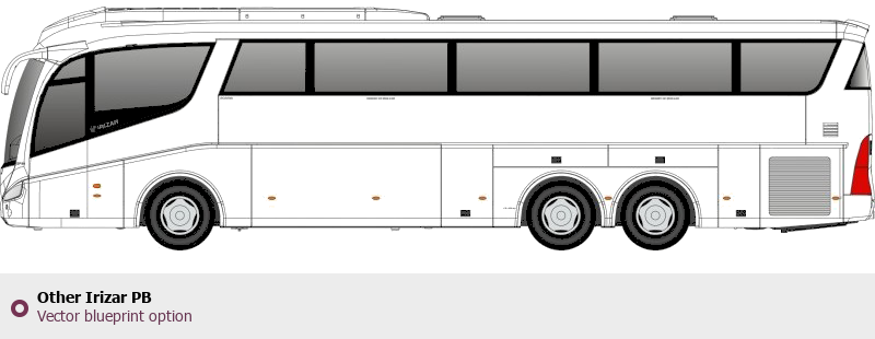 Raster blueprint of the Other Irizar PB Bus. This free downloadable image can be used for graphic projects, digital design, and 3D modeling. The file provides accurate exterior proportions of the vehicle. Body type: Bus.