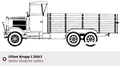 Raster blueprint of the Other Krupp L3H63 Heavy Truck. This free downloadable image can be used for graphic projects, digital design, and 3D modeling. The file provides accurate exterior proportions of the vehicle. Body type: Heavy Truck.