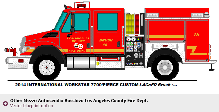 Raster blueprint of the Other Mezzo Antincendio Boschivo Los Angeles County Fire Dept. Heavy Truck. This free downloadable image can be used for graphic projects, digital design, and 3D modeling. The file provides accurate exterior proportions of the vehicle. Body type: Heavy Truck.