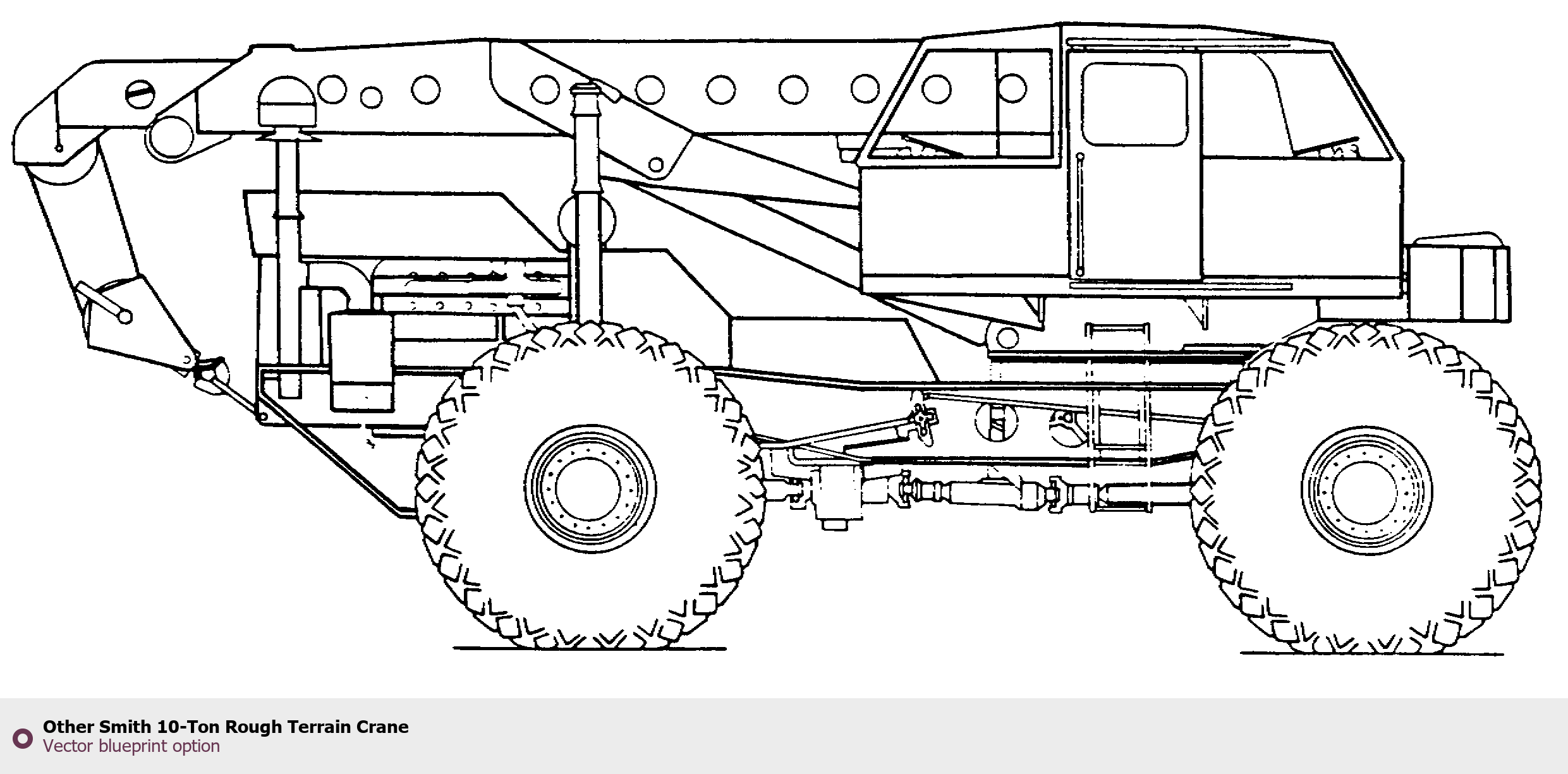 Raster blueprint of the Other Smith 10-Ton Rough Terrain Crane Heavy Truck. This free downloadable image can be used for graphic projects, digital design, and 3D modeling. The file provides accurate exterior proportions of the vehicle. Body type: Heavy Truck.