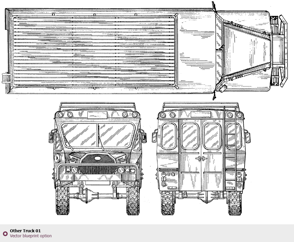 Raster blueprint of the Other Truck 01 Heavy Truck. This free downloadable image can be used for graphic projects, digital design, and 3D modeling. The file provides accurate exterior proportions of the vehicle. Body type: Heavy Truck.