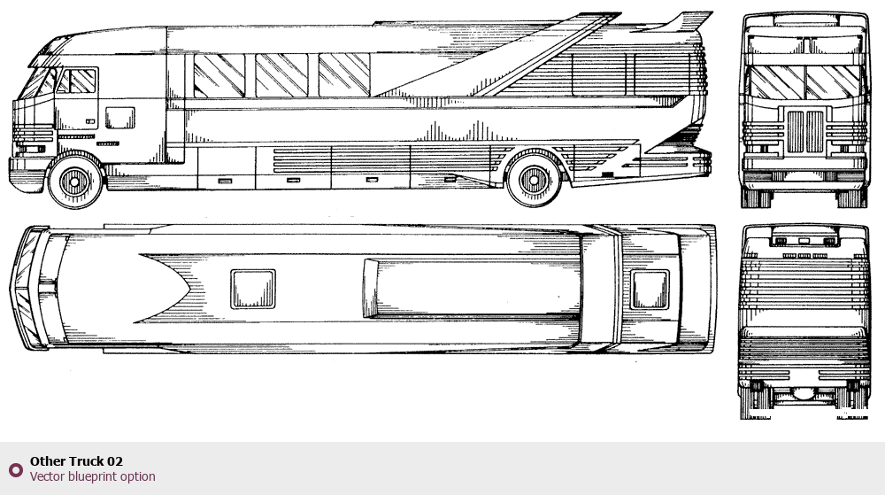 Raster blueprint of the Other Truck 02 Heavy Truck. This free downloadable image can be used for graphic projects, digital design, and 3D modeling. The file provides accurate exterior proportions of the vehicle. Body type: Heavy Truck.