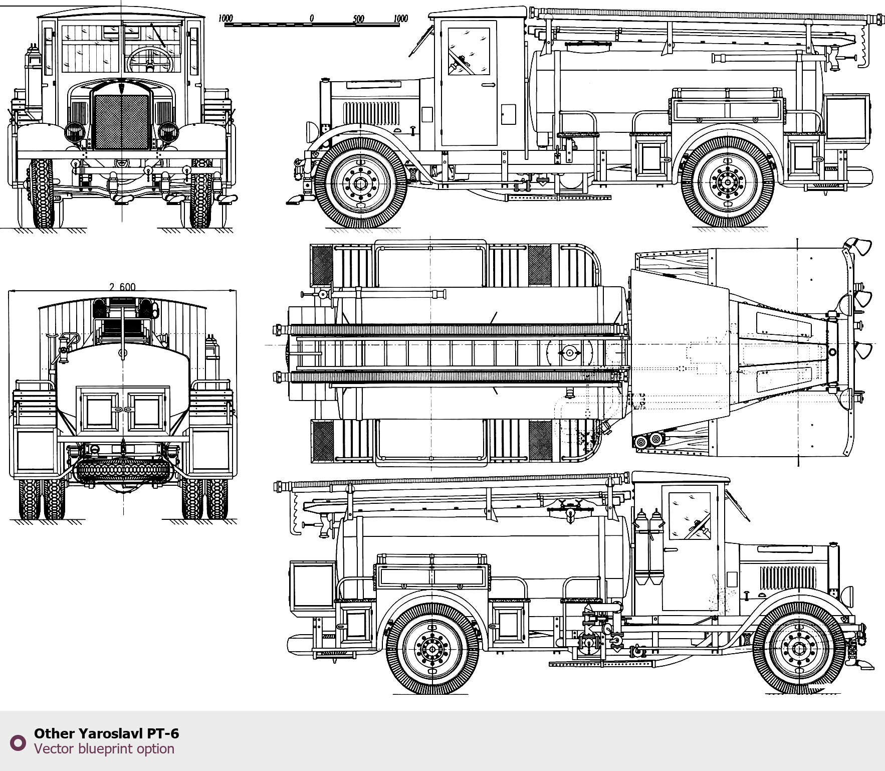 Raster blueprint of the Other Yaroslavl PT-6 Heavy Truck. This free downloadable image can be used for graphic projects, digital design, and 3D modeling. The file provides accurate exterior proportions of the vehicle. Body type: Heavy Truck.