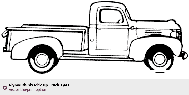 Raster blueprint of the 1941 Plymouth Six Pick-up Truck Pickup Truck. This free downloadable image can be used for graphic projects, digital design, and 3D modeling. The file provides accurate exterior proportions of the vehicle. Model year: 1941. Body type: Pickup Truck.