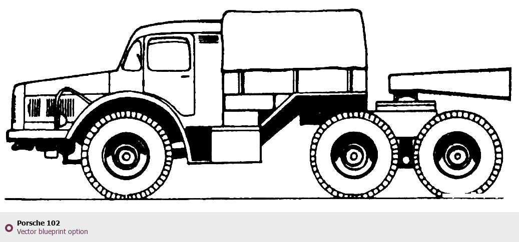 Raster blueprint of the Porsche 102 Heavy Truck. This free downloadable image can be used for graphic projects, digital design, and 3D modeling. The file provides accurate exterior proportions of the vehicle. Body type: Heavy Truck.