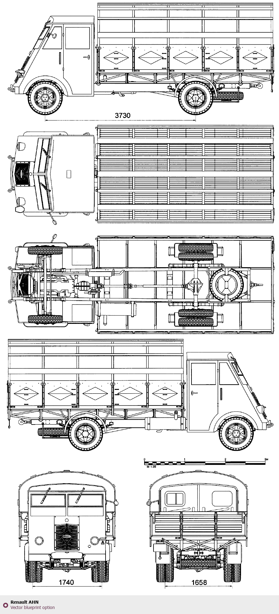 Raster blueprint of the Renault AHN Heavy Truck. This free downloadable image can be used for graphic projects, digital design, and 3D modeling. The file provides accurate exterior proportions of the vehicle. Body type: Heavy Truck.