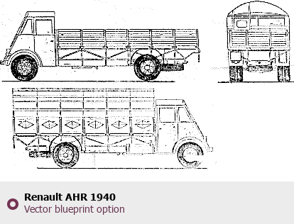Raster blueprint of the 1940 Renault AHR Heavy Truck. This free downloadable image can be used for graphic projects, digital design, and 3D modeling. The file provides accurate exterior proportions of the vehicle. Model year: 1940. Body type: Heavy Truck.