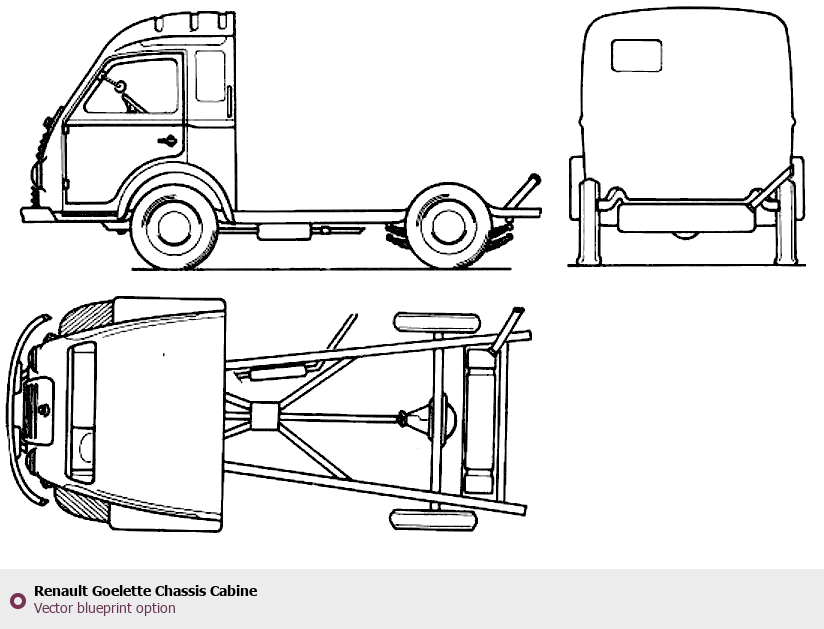 Raster blueprint of the Renault Goelette Chassis Cabine Heavy Truck. This free downloadable image can be used for graphic projects, digital design, and 3D modeling. The file provides accurate exterior proportions of the vehicle. Body type: Heavy Truck.