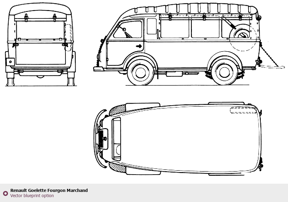 Raster blueprint of the Renault Goelette Fourgon Marchand Heavy Truck. This free downloadable image can be used for graphic projects, digital design, and 3D modeling. The file provides accurate exterior proportions of the vehicle. Body type: Heavy Truck.