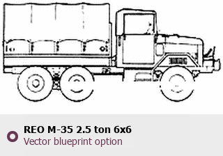 Raster blueprint of the REO M-35 2.5 ton 6x6 Heavy Truck. This free downloadable image can be used for graphic projects, digital design, and 3D modeling. The file provides accurate exterior proportions of the vehicle. Body type: Heavy Truck.