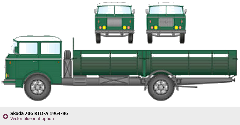 Raster blueprint of the Skoda 706 RTD-A 1964-86 Heavy Truck. This free downloadable image can be used for graphic projects, digital design, and 3D modeling. The file provides accurate exterior proportions of the vehicle. Body type: Heavy Truck.