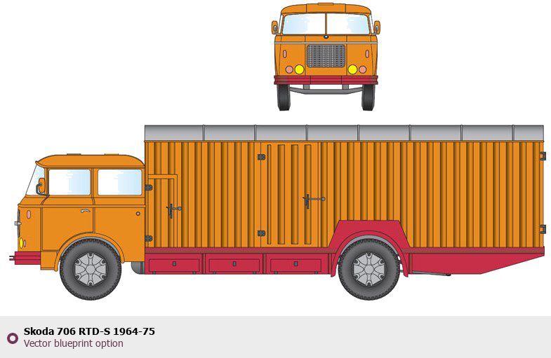 Raster blueprint of the Skoda 706 RTD-S 1964-75 Heavy Truck. This free downloadable image can be used for graphic projects, digital design, and 3D modeling. The file provides accurate exterior proportions of the vehicle. Body type: Heavy Truck.