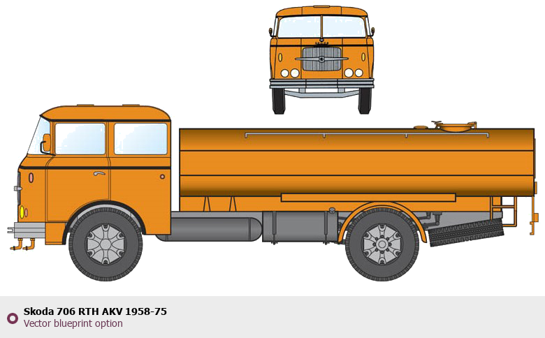 Raster blueprint of the Skoda 706 RTH AKV 1958-75 Heavy Truck. This free downloadable image can be used for graphic projects, digital design, and 3D modeling. The file provides accurate exterior proportions of the vehicle. Body type: Heavy Truck.