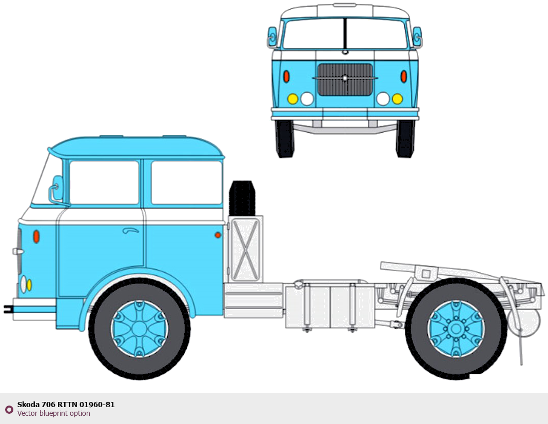 Raster blueprint of the Skoda 706 RTTN 01960-81 Heavy Truck. This free downloadable image can be used for graphic projects, digital design, and 3D modeling. The file provides accurate exterior proportions of the vehicle. Body type: Heavy Truck.