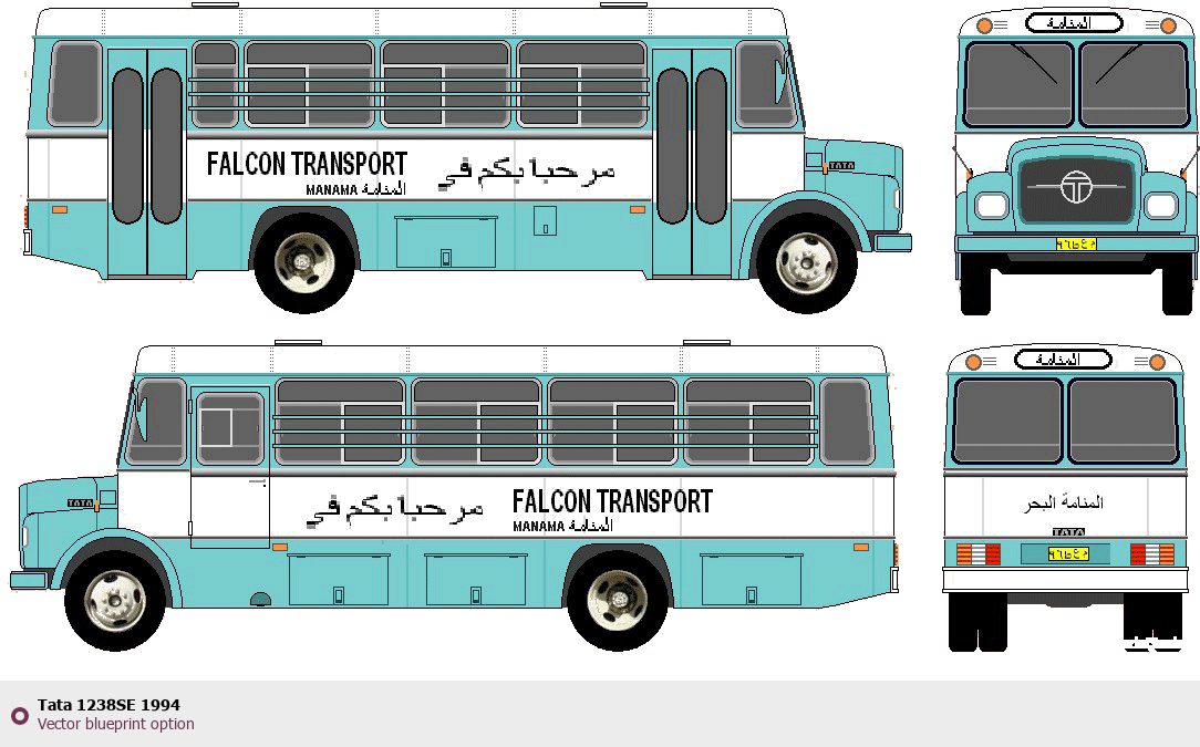 Raster blueprint of the 1994 Tata 1238SE Bus. This free downloadable image can be used for graphic projects, digital design, and 3D modeling. The file provides accurate exterior proportions of the vehicle. Model year: 1994. Body type: Bus.