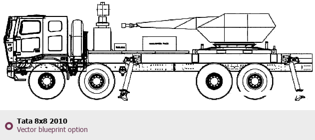 Raster blueprint of the 2010 Tata 8x8 Heavy Truck. This free downloadable image can be used for graphic projects, digital design, and 3D modeling. The file provides accurate exterior proportions of the vehicle. Model year: 2010. Body type: Heavy Truck.