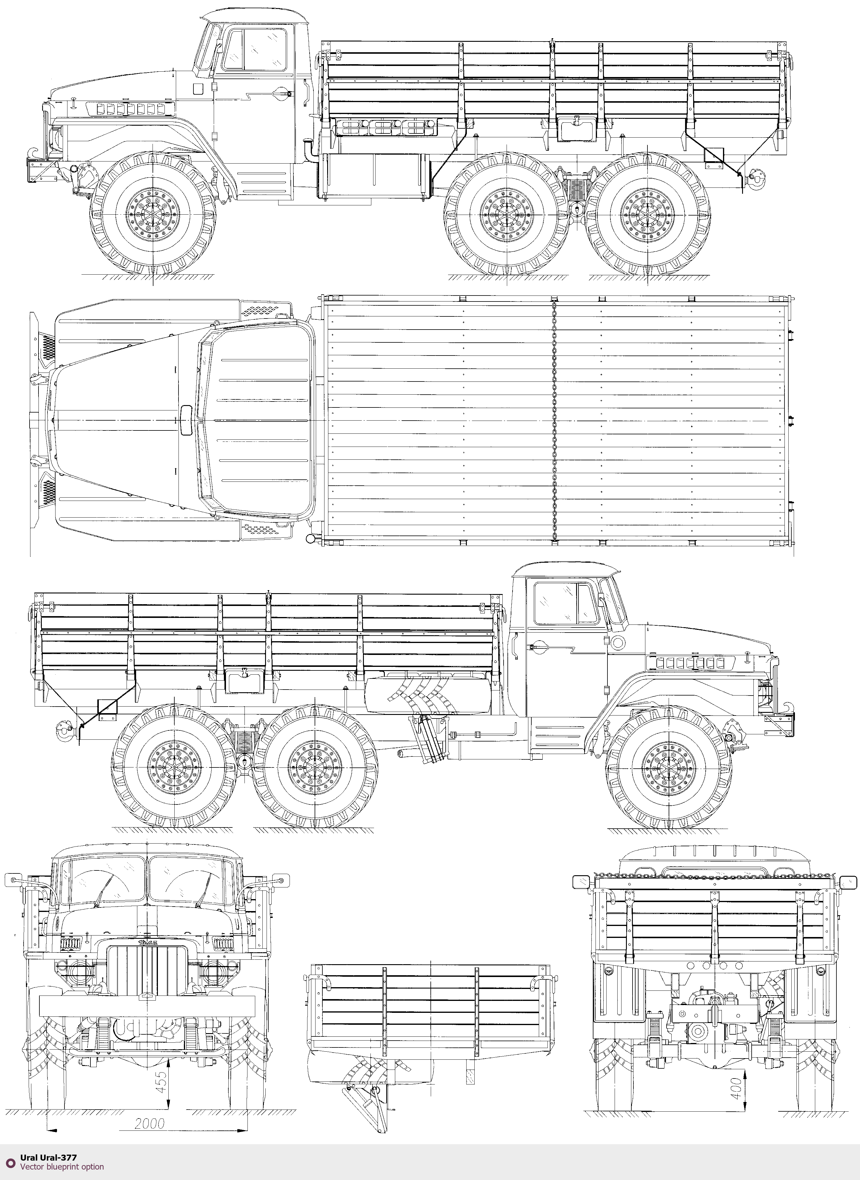 Raster blueprint of the Ural Ural-377 Heavy Truck. This free downloadable image can be used for graphic projects, digital design, and 3D modeling. The file provides accurate exterior proportions of the vehicle. Body type: Heavy Truck.