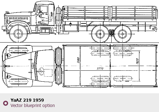 Raster blueprint of the 1959 YaAZ 219 Heavy Truck. This free downloadable image can be used for graphic projects, digital design, and 3D modeling. The file provides accurate exterior proportions of the vehicle. Model year: 1959. Body type: Heavy Truck.