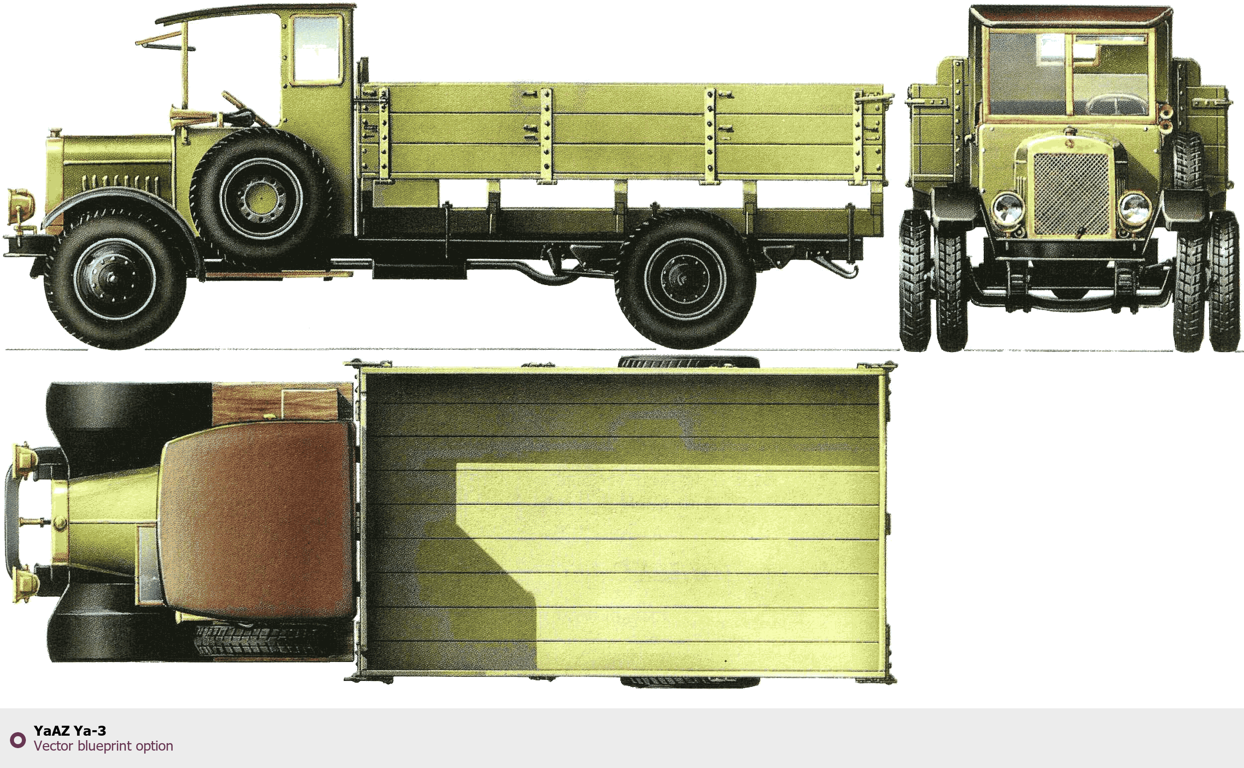 Raster blueprint of the YaAZ Ya-3 Heavy Truck. This free downloadable image can be used for graphic projects, digital design, and 3D modeling. The file provides accurate exterior proportions of the vehicle. Body type: Heavy Truck.