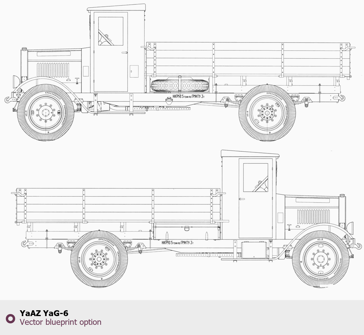 Raster blueprint of the YaAZ YaG-6 Heavy Truck. This free downloadable image can be used for graphic projects, digital design, and 3D modeling. The file provides accurate exterior proportions of the vehicle. Body type: Heavy Truck.
