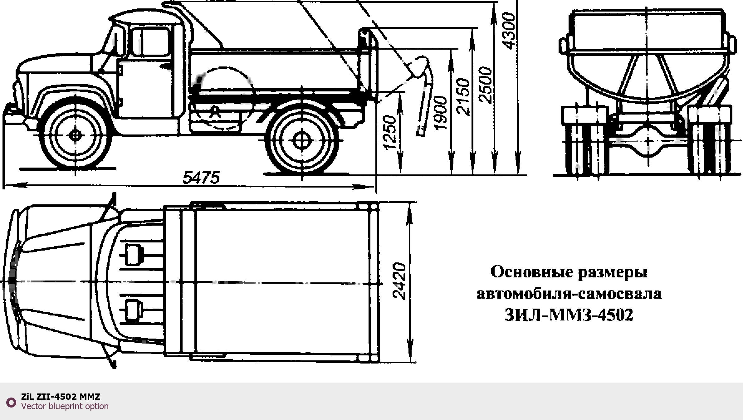 Raster blueprint of the ZIL ZII-4502 MMZ Heavy Truck. This free downloadable image can be used for graphic projects, digital design, and 3D modeling. The file provides accurate exterior proportions of the vehicle. Body type: Heavy Truck.
