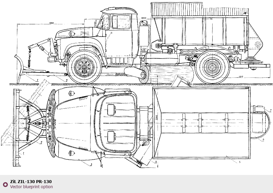 Raster blueprint of the ZIL ZIL-130 PR-130 Heavy Truck. This free downloadable image can be used for graphic projects, digital design, and 3D modeling. The file provides accurate exterior proportions of the vehicle. Body type: Heavy Truck.