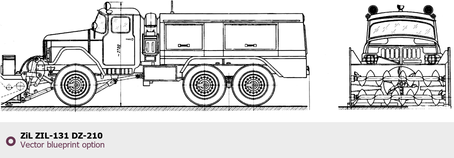 Raster blueprint of the ZIL ZIL-131 DZ-210 Heavy Truck. This free downloadable image can be used for graphic projects, digital design, and 3D modeling. The file provides accurate exterior proportions of the vehicle. Body type: Heavy Truck.