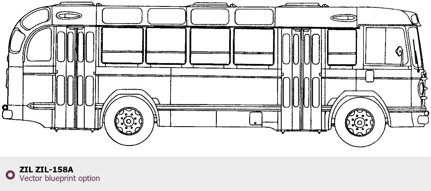 Raster blueprint of the ZIL ZIL-158A Bus. This free downloadable image can be used for graphic projects, digital design, and 3D modeling. The file provides accurate exterior proportions of the vehicle. Body type: Bus.