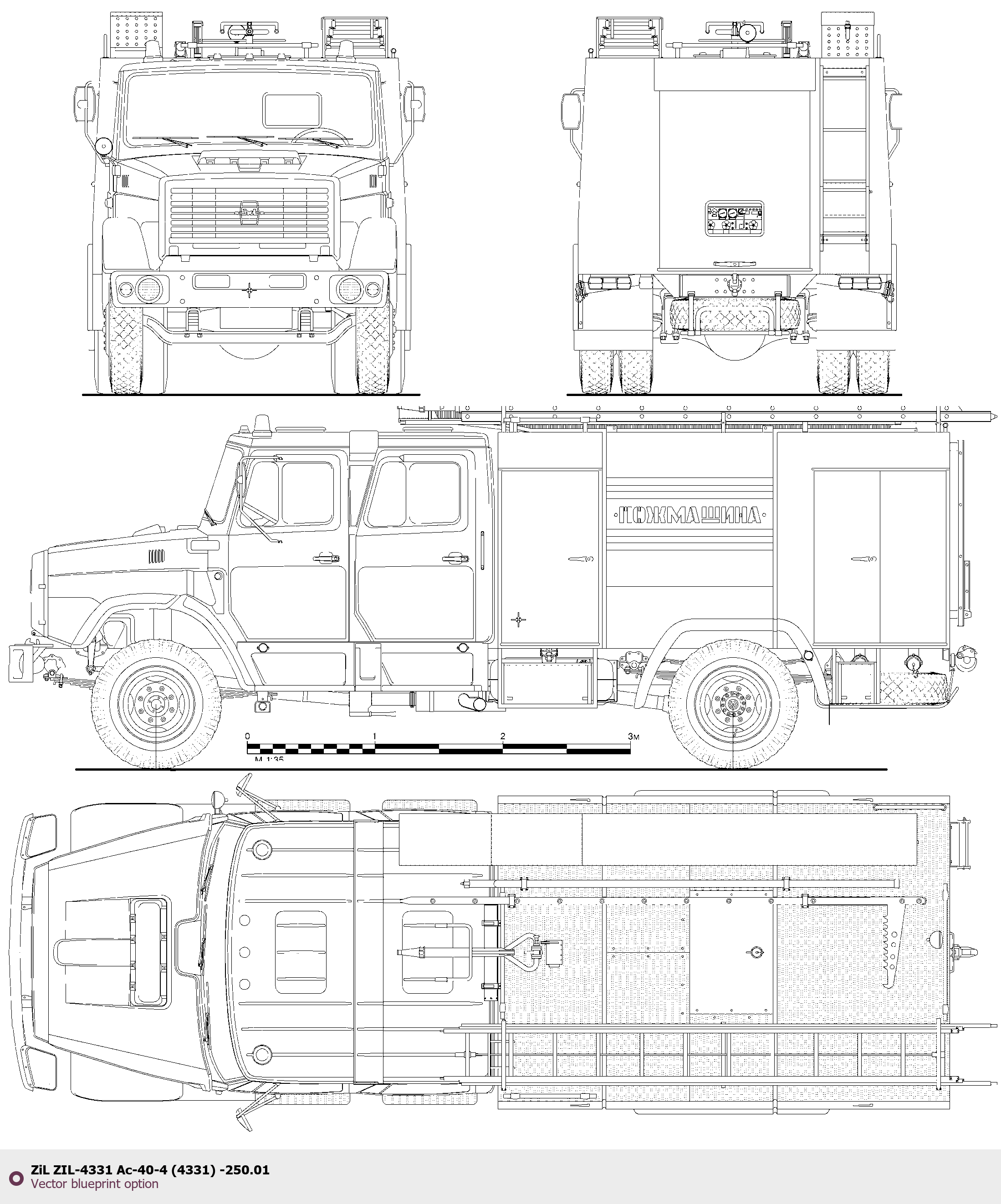 Raster blueprint of the ZIL ZIL-4331 Ac-40-4 (4331) -250.01 Heavy Truck. This free downloadable image can be used for graphic projects, digital design, and 3D modeling. The file provides accurate exterior proportions of the vehicle. Body type: Heavy Truck.