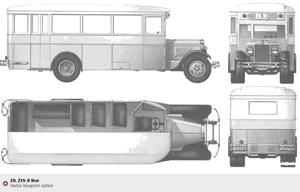 Raster blueprint of the ZIL ZIS-8 Bus Bus. This free downloadable image can be used for graphic projects, digital design, and 3D modeling. The file provides accurate exterior proportions of the vehicle. Body type: Bus.