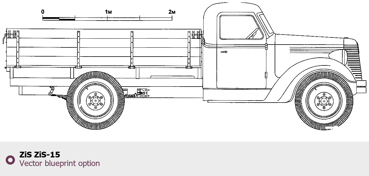 Raster blueprint of the ZIS ZiS-15 Heavy Truck. This free downloadable image can be used for graphic projects, digital design, and 3D modeling. The file provides accurate exterior proportions of the vehicle. Body type: Heavy Truck.