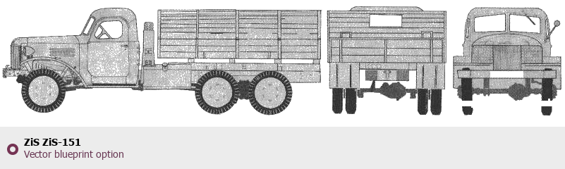 Raster blueprint of the ZIS ZiS-151 Heavy Truck. This free downloadable image can be used for graphic projects, digital design, and 3D modeling. The file provides accurate exterior proportions of the vehicle. Body type: Heavy Truck.