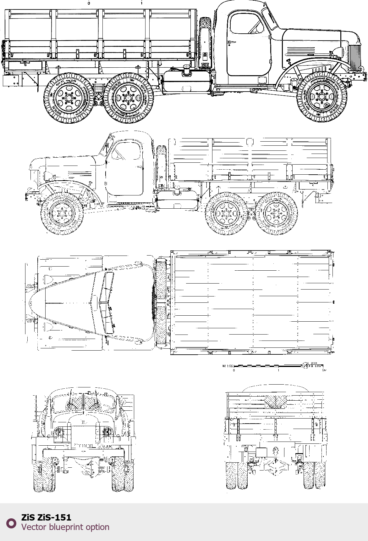 Raster blueprint of the ZIS ZiS-151 Heavy Truck. This free downloadable image can be used for graphic projects, digital design, and 3D modeling. The file provides accurate exterior proportions of the vehicle. Body type: Heavy Truck.