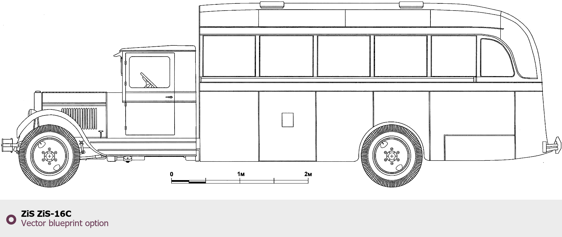 Raster blueprint of the ZIS ZiS-16C Heavy Truck. This free downloadable image can be used for graphic projects, digital design, and 3D modeling. The file provides accurate exterior proportions of the vehicle. Body type: Heavy Truck.