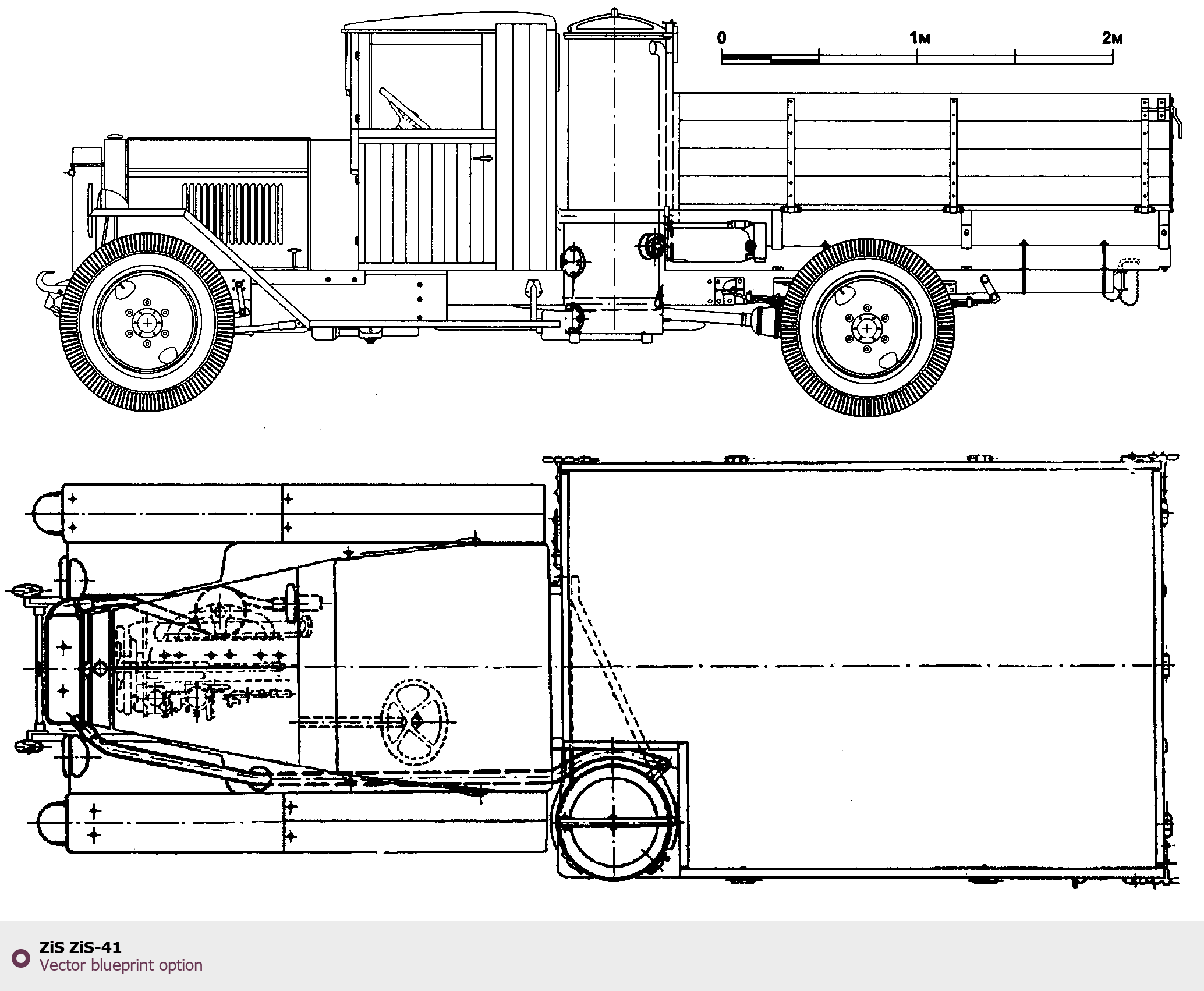 Raster blueprint of the ZIS ZiS-41 Heavy Truck. This free downloadable image can be used for graphic projects, digital design, and 3D modeling. The file provides accurate exterior proportions of the vehicle. Body type: Heavy Truck.
