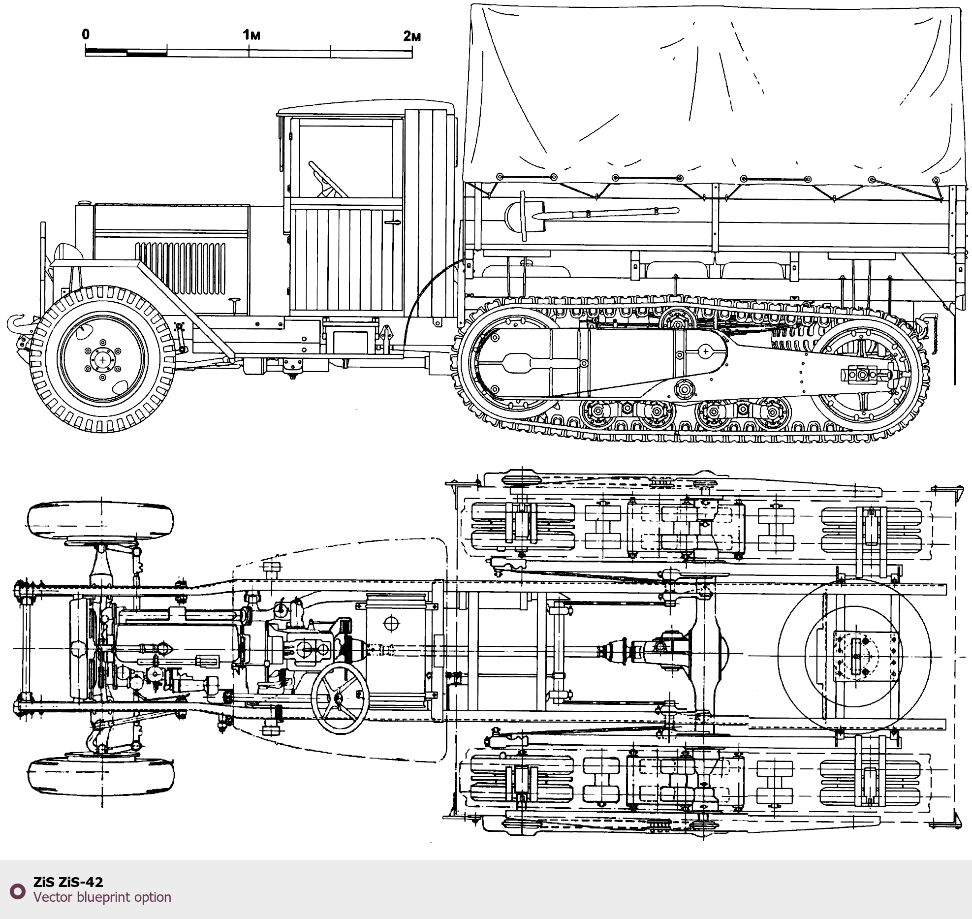 Raster blueprint of the ZIS ZiS-42 Heavy Truck. This free downloadable image can be used for graphic projects, digital design, and 3D modeling. The file provides accurate exterior proportions of the vehicle. Body type: Heavy Truck.
