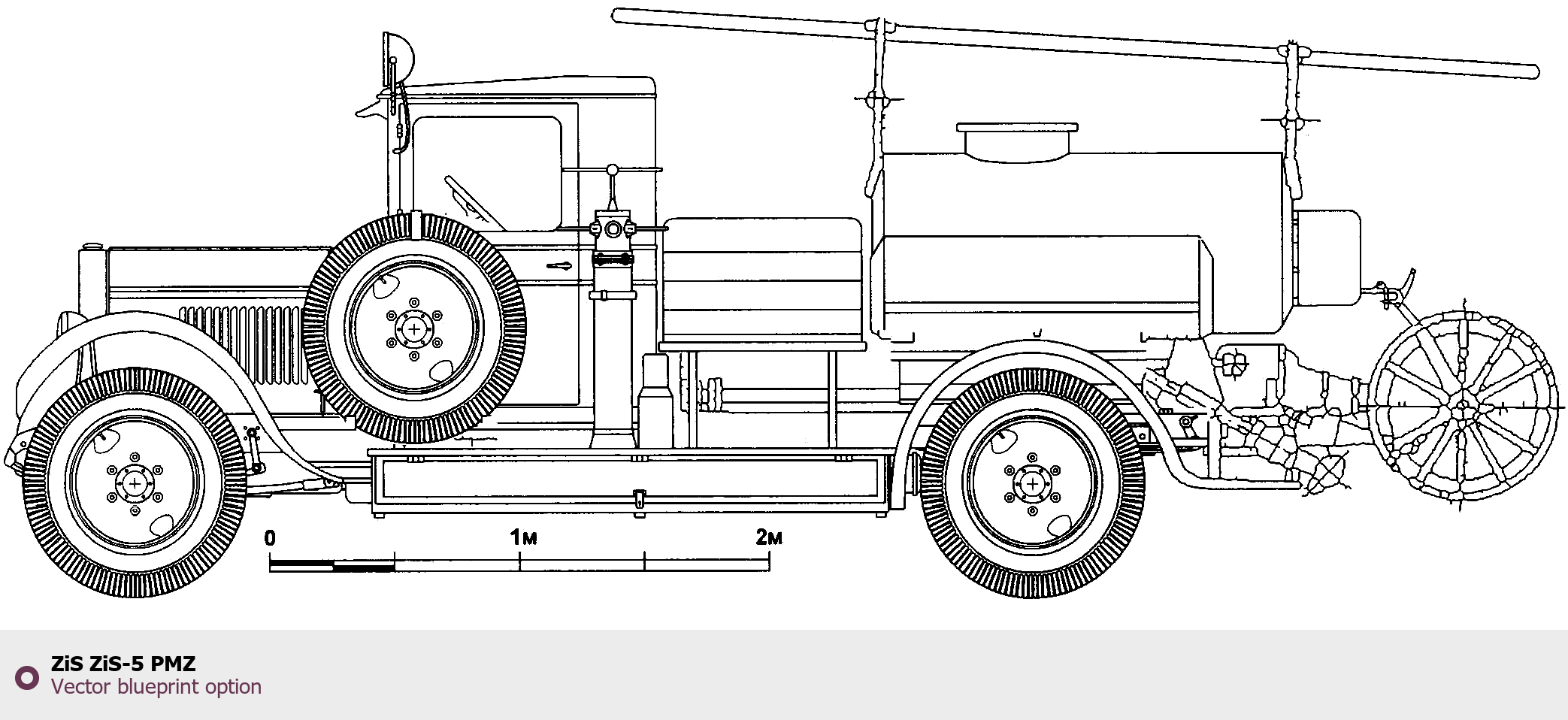 Raster blueprint of the ZIS ZiS-5 PMZ Heavy Truck. This free downloadable image can be used for graphic projects, digital design, and 3D modeling. The file provides accurate exterior proportions of the vehicle. Body type: Heavy Truck.