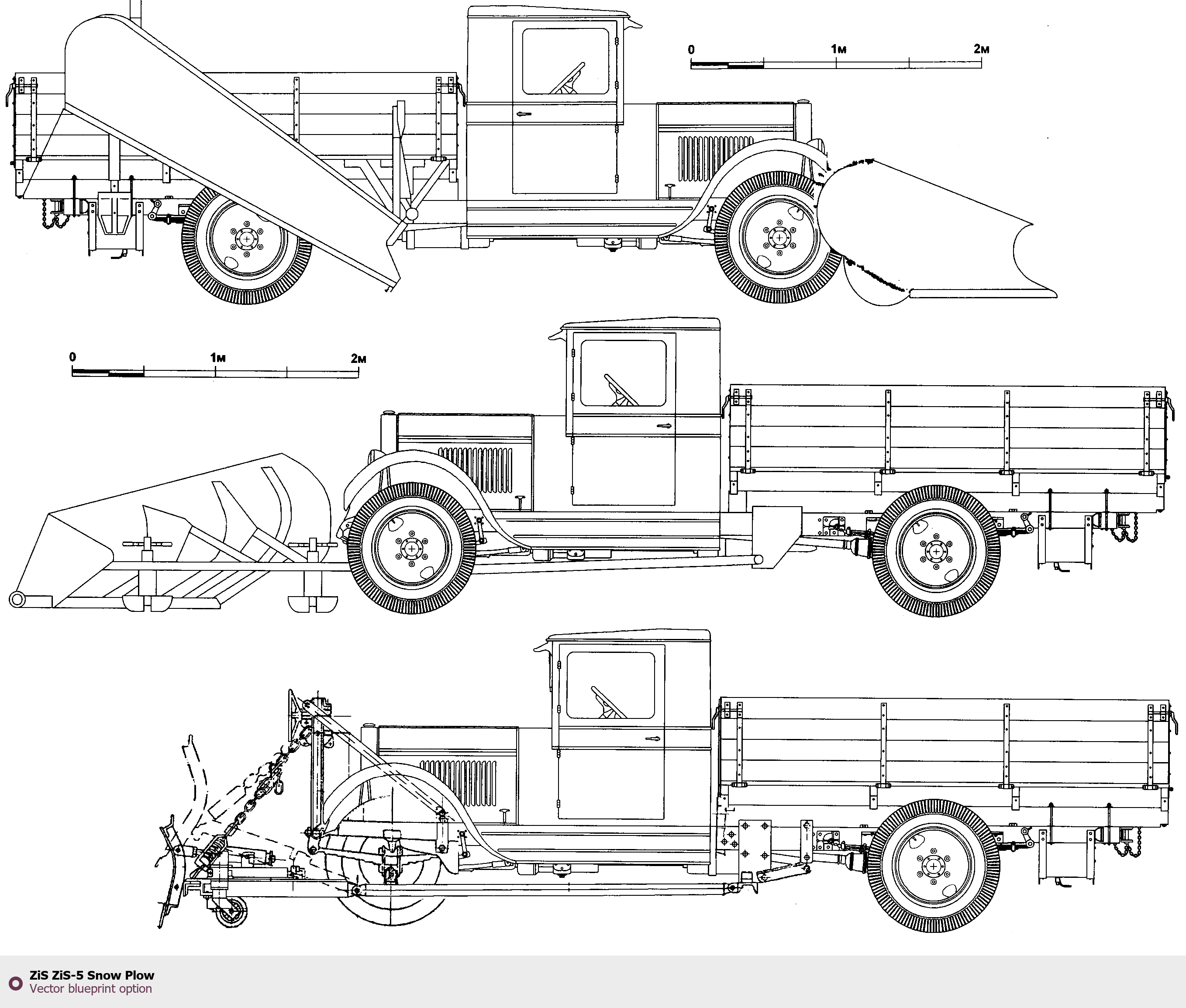Raster blueprint of the ZIS ZiS-5 Snow Plow Heavy Truck. This free downloadable image can be used for graphic projects, digital design, and 3D modeling. The file provides accurate exterior proportions of the vehicle. Body type: Heavy Truck.