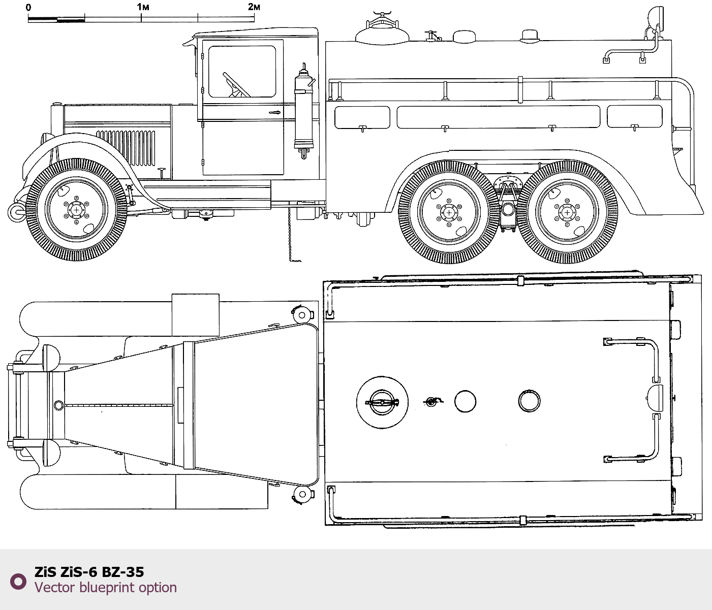 Raster blueprint of the ZIS ZiS-6 BZ-35 Heavy Truck. This free downloadable image can be used for graphic projects, digital design, and 3D modeling. The file provides accurate exterior proportions of the vehicle. Body type: Heavy Truck.