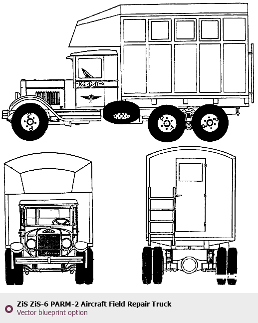 Raster blueprint of the ZIS ZiS-6 PARM-2 Aircraft Field Repair Truck Heavy Truck. This free downloadable image can be used for graphic projects, digital design, and 3D modeling. The file provides accurate exterior proportions of the vehicle. Body type: Heavy Truck.