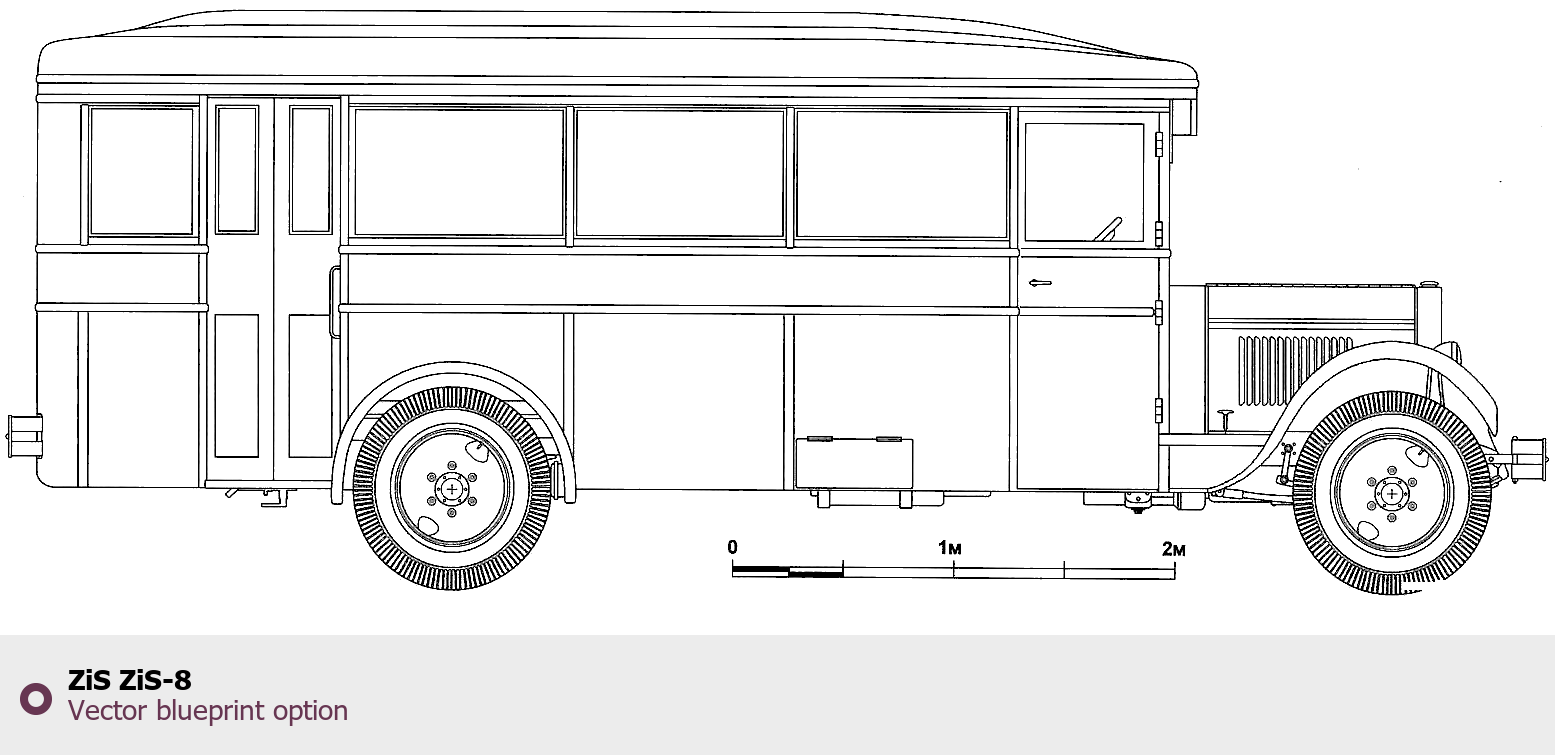 Raster blueprint of the ZIS ZiS-8 Heavy Truck. This free downloadable image can be used for graphic projects, digital design, and 3D modeling. The file provides accurate exterior proportions of the vehicle. Body type: Heavy Truck.