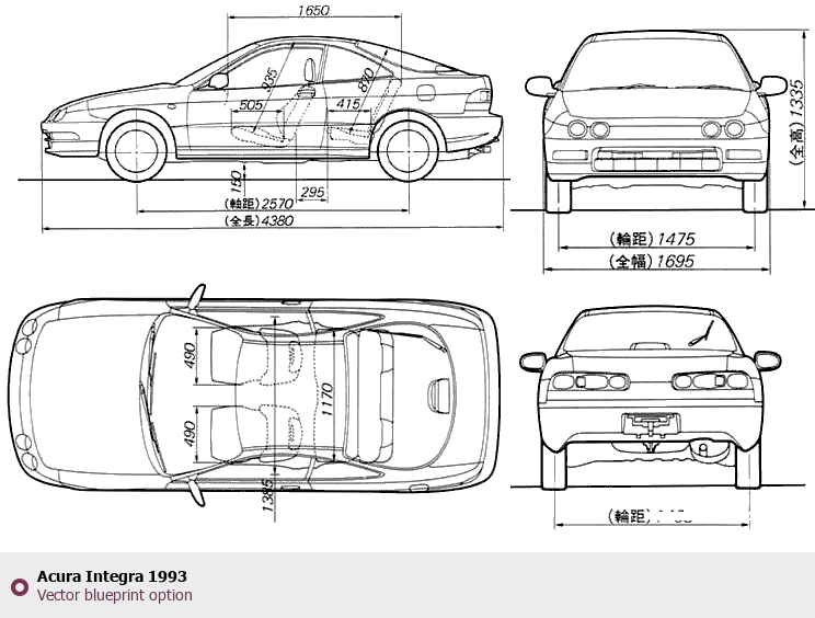 Raster blueprint of the 1993 Acura Integra Tag. This free downloadable image can be used for graphic projects, digital design, and 3D modeling. The file provides accurate exterior proportions of the vehicle. Model year: 1993. Body type: Tag.