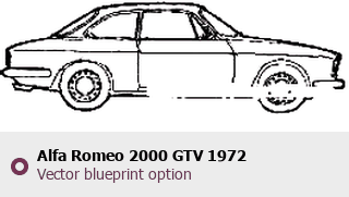Raster blueprint of the 1972 Alfa Romeo 2000 GTV Coupe. This free downloadable image can be used for graphic projects, digital design, and 3D modeling. The file provides accurate exterior proportions of the vehicle. Model year: 1972. Body type: Coupe.